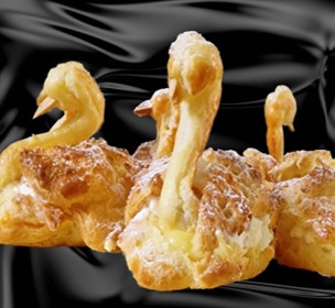 Schwäne aus Brandteig mit Vanillecrème und Rahm gefüllt
